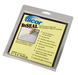 Diseal Sealing tapes come in either a 6in x 6in patch or 4in x 50ft roll and either white or aluminum in color.