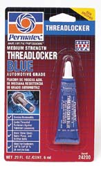 Ideal for valve cover bolts, water pump bolts, oil pan bolts, rocker adjustment arm nuts, carburetor studs, case cover bolts, shift lever nuts, disc brake caliper bolts, intake manifold bolts, alternator mounts. Features a temperature range of -65?F to 300?F. Locks and seals while preventing parts loosening due to vibration. 1 tube per card.