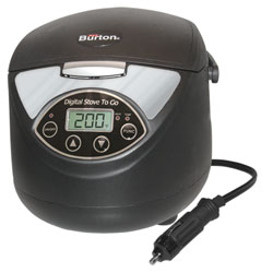 Building on our original Stove To Go, this digital model allows for greater cooking control, higher temperatures, and larger capacity. Used as a stove, oven, or slow cooker, it conveniently makes casseroles, soups, stews, hot dogs, and heat sandwiches, leftovers, or frozen meals. Features two cooking modes: heat or temperature, reaches 350?F, 1.5 liter capacity, removable pan and steaming tray, LCD display, 5?-ft. power cord. 6 lbs.