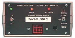Dinosaur Electronics, Atwood, Channel Products, Fenwal, Gasliter, Ram. Tests 24V AC ignitor boards for "Park Models". It can separately test the local and remote sense circuits. Includes test cables and instructions.