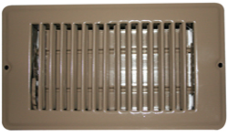 Registers for A/C or heating open and close easily for desired air flow. Metal, Brown. Cut-out dimensions 4"x 12". Overall dimensions 5 1/4" x 14".