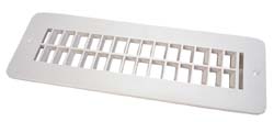 Original replacement floor heating registers. Molded thermoplastic construction won't rust or fade and has solid color throughout so it will not peel or flake. Rounded corners for safety and extra wide flange will hide any area left by previous registers. Meets or exceeds H.U.D. and R.V.I.A. specifications. Cut-out Dimension: 9-7/8" x 2-1/4". Outside Dimension: 11-7/8" x 4-1/4".