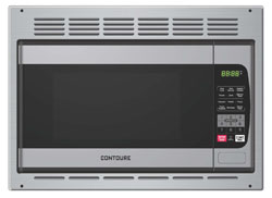 Ready to install, this 1.0 cubic foot microwave oven in stainless with trim kit features 900 watts cooking power (1350 input power), exclusive ?Easy Clean" interior, 6 one touch menus, 12" glass turntable, 10 power levels, child safety lock, and interior oven light.