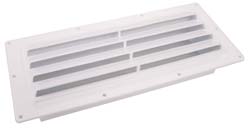 Polystyrene plastic outside vents with horizontal outlets. 1-3/4" inlet flange. 11-1/2" x 5-1/4" outside flange.