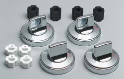 Make your range look like new. This set of 4 chrome burner knobs will fit most gas ranges. The set includes replacement knobs, dial overlays, and adapter inserts.
