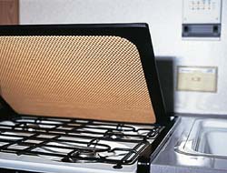Eliminate stovetop rattle. Ideal for slicing or carving, it provides much needed extra counter space in your RV kitchen. Sits directly on stovetop grates or over an existing stove cover. Stays in place with non-skid backing. Durable polyethylene. 17" x 19-1/2" x 1/2"._x000D_