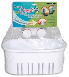Self-draining basket holds soap, shampoo, sponges and more!