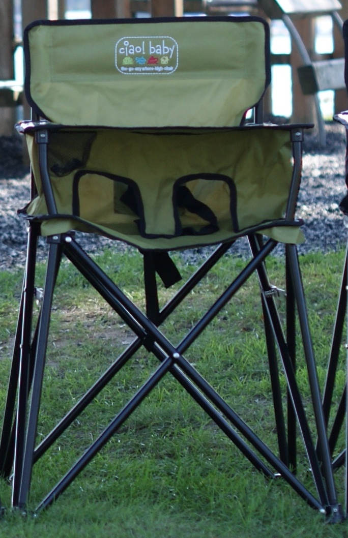 Folding Baby High Chairs - SageThe ciao! baby portable high chair is an innovative, practical solution for families on the go - travel, picnics, camping, vacations, tailgating, and grandma?s house!Free standing chair requires no assembly. Light weight and flexible design easily unfolds, locks into place, and folds back up in seconds. Durable material with a clear vinyl tray cover that easily wipes clean. Built-in cup holder. Comfortable lap belt securely holds child.Approx. Open Size: 23?x23?x32Approx. Weight: 8 lbs.