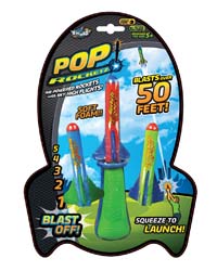 Prepare for take-off with this pocket-sized, take anywhere, air-powered launcher that blasts foam rockets an amazing 52 feet! Real rocket launch action that's safe for indoors and out. Three colorful foam rockets included. Ages 5+.