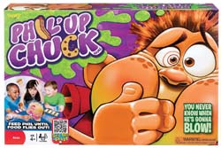 Roll the dice and feed Phil chicken, broccoli, pizza, and more! Watch as his cheeks grow, his ears pop, and his eyebrows raise! Then?BURP!! Phil's head explodes and food flies out! If you make Phil upchuck, flip a clean shirt to the dirty side. Four dirty shirts and the game is over. The player with the most clean shirts is the winner!