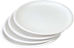 Set of 4 "cool-to-the-touch" 9.75" diameter microwave plates allow you to reheat food and conveniently transfer to the table. Made with shatterproof and dishwasher safe high heat Polypropylene.