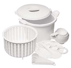 Versatile cooker allows you to cook moist fluffy rice, perfect pasta or healthy steamed vegetables quickly and easily. Base holds 12 cups of rice.
