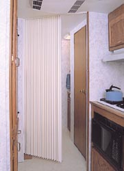 ??? For privacy and style in your RV ??? Heavy-duty soil resistant and water resistant pleated fabrics ??? Available in almond or ash gray ??? Custom-designed, color coordinated hardware ??? Light-weight construction guarantees easy operation ??? Mounting hardware and installation instructions included ??? One year warranty ??? Please allow 3-4 weeks for delivery ??? Specify length and width of door opening when ordering ??? Door width 61" to 84" This is a special order item and is not