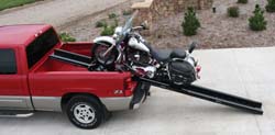 OverBilt SportLoader provides a simple and effective method of hauling your motorcycle while also providing the ability to tow a trailer, camper, or travel trailer. The motorcycle rides approximately one inch off the bed of the pickup. This provides a stable base for the ride. Removable ramps store in the bed of the pickup. Extension available for overheight pickup trucks. Pivot tube required. Order separately.