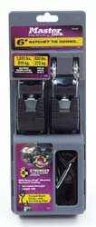 Master Lock Strap Trap? Tie Downs offer a convenient, innovative upgrade to standard tie downs ? a bungee cord and toggle feature that cinches around excess strap and keeps it firmly in place while in use. Monster Weave? webbing and Razor Coat? abrasion resistant protectant add strength and durability. 92-8839 has ?S" hooks with retaining clips for peace of mind cargo security. 92-8837 and 92-8832 have a ?J" hook.