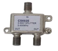 Two-way line splitter for coupling or dividing signals on a 75 OHM line. F-type connection for RG-59, RG-6, and RG-11/U cables. Connectors not included. For indoor use only. 1 per card.