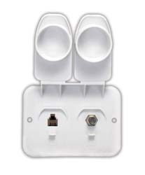 One piece TV/cable plate is constructed of durable plastic that won't rust, fade or discolor. Access covers are constructed as part of the plate. Easy installation or replacement anywhere a cable TV and phone hook up is needed. Polar white.