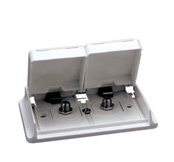 Weatherproof TV hookups with two 75 ohm F-style connectors to connect cables, satellites, and outdoor TVs. Priced each.