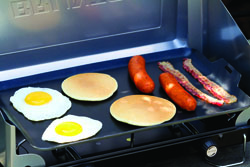 Hard-anodized aluminum griddle is perfect for making breakfast under the open sky. 10 x 16.5".
