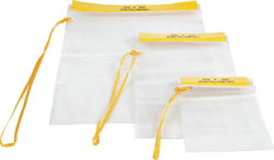 Triple-fold pouch tops with hook-and -loop closure and handy strap keep the water out so your valuables stay dry. Three sizes to accommodate everything from cell phones and keys to books and maps. 10.5 ? 13.5, 6.75 ? 10 and 4.75 ? 7 inches.