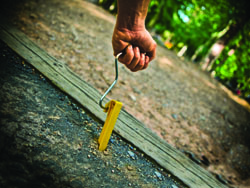 Hardened-steel tent peg puller with comfortable grip allows easy removal of tent pegs.