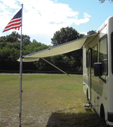 This versatile flagpole mounts on your RV awning or ladder. Includes a 9' aluminum pole, 2' x 3' U.S. flag, gold ball top and mounting hardware. For parked use only. Flag can be raised and lowered from ground level on most RVs. Easy assembly and disassembly.