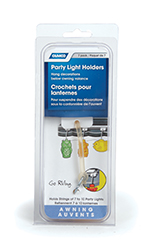 Hang party lights quickly and easily. Strong, flexible vinyl holders slide securely into the awning roller bar channel. Seven 8" plastic lanyards with metal hooks allow party lights to hang below RV awning valance. 7/card