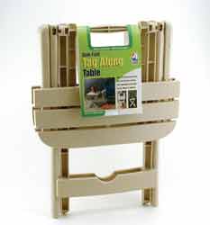 Just unfold and you're ready for the campground, patio, pool, or tailgate party! Weatherproof resin table is easy to clean and holds up to 15 lbs. Tabletop measures 12" x 14". Stands 18-1/2" high.
