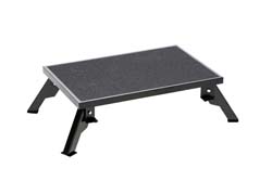 This steel platform step is stable in all directions. Legs deploy past the plane of the platform to keep you safe and sound traveling up and down your step. All steel contruction with easy folding legs. Works at two heights 4" and 8". Non-skid tape on platform surface keeps your foot planted. Platform measures 16"x24".