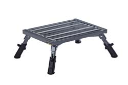 This amazing aluminum platform has rubber feet that won't slip, and can support up to 1,000 pounds!!! The legs are individually adjustable to different heights to accommodate un-even surfaces.