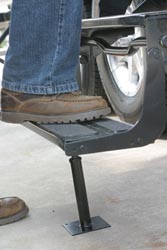 Mounts under RV entry steps for extra stability. Swings up and stores securely under your RV step. Helps prevent sag and wear and keeps your coach from rocking. 10,000 lb. limit. 1/box.