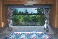 Most RVs have a rear bedroom window and you can't put a window awning over it because the ladder blocks the arms. The Carefree SunShade? fits directly over the window. SunShades? roll up for travel and roll down for camping. Features Black FullView? open weave fabric, extruded aluminum roller, die cast zinc brackets, and Black castings with a 55" vertical drop. Custom sizes and colors are also available. Two year warranty on parts, labor and freight.