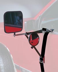 Fits all vehicles! Adjustable length, non-scratch nylon strap quickly and easily hooks at the top and bottom of your vehicle?s door or fender holding mirror securely in place. No tools necessary. Mirror is adjustable and can extend up to 19" from door. Will fit driver or passenger side. Features a black powder coated housing and rubber padding to help control vibration and prevent scratching. Dimensions: 7-3/4"W x 1-1/2"D. Priced each.