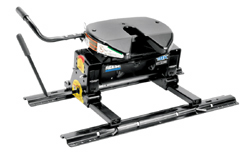 The 5th wheel you know, but better! Features our best Reese? Signature Series? head, with the base and mounting kit that you already know and love from the Reese? Select Series line of 5th wheels. Tough, heavy-duty stamped head looks just like the ones on the real tractor-trailers. Increased king pin contact design and wider king pin funnel (9" vs. 6"). Forged single jaw with self latching design. King pin indicator and 6 degree side-to-side head pivot. 4-way (side-to-side and front-to-back) pivot. 14" to 18" vertical height adjustment.