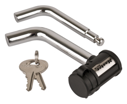 Chrome swivel head lock rotates 360? allowing for easy access in tight applications. Lock features a weather seal external o-ring for additional weather protection and a 5/8" stainless steel sleeve. Works great on OEM hitches. Fits 1/2" or 5/8" applications. Lifetime warranty.