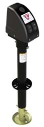 This electric A-frame jack offers 22" of total travel and features an LED courtesy light for simply nighttime operation. Crank included for manual override in case of power failure. Tongue jack positions quickly and easily with integrated drop leg. Powered drive provides quiet operation and efficient use of electrical power. No more hand cranking. Easy-to-access on/off and retract/extend toggle switches make for simple operation. LED courtesy light on front of jack allows for simple nighttime setup. All surfaces are corrosion resistant. Bolt-on installation with included hardware. Emergency manual override crank included. Rating 3,500 lbs. 5 Year Warranty.