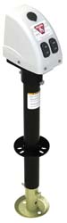 This electric A-frame jack offers 22" of total travel and features an LED courtesy light for simply nighttime operation. Crank included for manual override in case of power failure. Tongue jack positions quickly and easily with integrated drop leg. Powered drive provides quiet operation and efficient use of electrical power. No more hand cranking. Easy-to-access on/off and retract/extend toggle switches make for simple operation. LED courtesy light on front of jack allows for simple nighttime setup. All surfaces are corrosion resistant. Bolt-on installation with included hardware. Emergency manual override crank included. Rating 3,500 lbs. 5 Year Warranty.