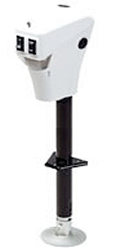 This electric tongue jack takes the back breaking work out of cranking the tongue of your travel trailer up and down to match your tow vehicle or leveling your trailer after towing. Simply push a button to raise and lower into position with complete control. The electric jack features a large, long lasting, three bulb LED night light for when you have to hitch up in the dark and an emergency crank.