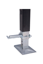 Solidly bolts onto Fifth Wheel landing gear legs to allow for quick and easy one hand adjustment with spring loaded pins. Constructed of heavy duty zinc plated steel. Quick pins install in minutes.