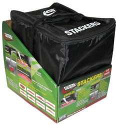 Works with Valterra's Stackers Leveling Block System. Place in position, drive onto the stackers and the chock stops the RV wheel at the top of the stack. It's that simple and makes leveling a one person job! Chock also includes a built-in handle for easy carrying and secure nesting onto the Stackers.
