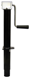 Heavy-duty sidewind tongue jacks in corrosion resistant black E-coat. Constructed of high strength tubing, precision metal gears & high performance bearings. The internal screw shaft is coated top to bottom with a specially formulated lubricant that provides increased protection against wear and corrosion. Accessible gear housing for easier maintenance. ?A" frame bracket pre-installed for easier mounting to either weld-on or bolt-on tongues. 1,000 lb. has 1-7/8" OD tube and 2,000 lb. has 2-1/4" OD tube. Packed in color retail box.