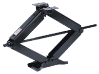 Leveling jacks provide leveling and stabilizing for travel trailers and fifth wheels. Heavy-duty steel construction. Each jack includes a large 5" by 8" rectangular steel base plate and frame mounting plate that is supported by its own channel. All scissor arms engage with a tooth gear design to ensure straight line vertical extension and retraction. The model 24002D has 4" to 23-3/4" extension. 7,500 lb. capacity. Set of 2 with #20037 crank handle with swivel head. Made in U.S.A.