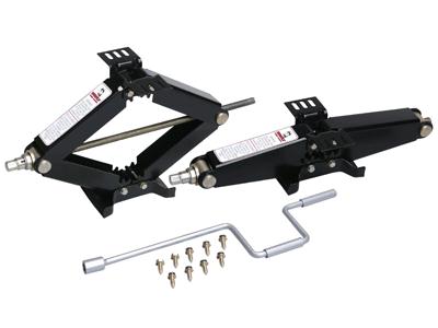 A Scissor Jack from Husky is an economical way of leveling and stabilizing your Travel trailer, 5th wheel or other RV. This model is of heavy-duty all steel construction with a universal design that fits most RVs. This stabilizer jack has a 35 square inch base plate and 6500 lb static weight capacity. The jack can be welded or screwed on and has a black powder coated finish. The set of 2 includes the speed handle.