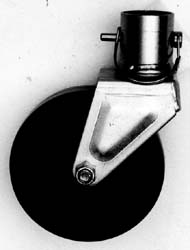 Removable poly wheel caster fits A-frame jacks with 2" tubes. Includes pin.
