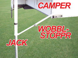 Stop the wobble and camper jack failure with the Wobbl-Stoppr. Dramatically reduces camper jack/frame stress. Increase camper comfort by eliminating camper movement and fully adjustable. Stainless steel and aircraft grade aluminum. Round and square jack applications. Lifetime warranty.