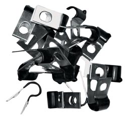 Rubber-coated metal clamps for use are 5/16" ID with a 3/8" stud. 25 per bag.