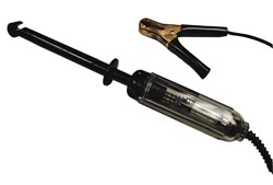 One-hand operation to test circuits in hard-to-reach areas. Works two ways -- captures and pierces wire with unique hook design or it can be used as an "ice pick" type tester._x000D_