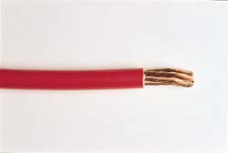 Full-gauge copper conductor is tough, high temperature PVC insulated ? abrasion and chemical resistant. Meets or exceeds SAE J1127 specifications, with a temperature rating of 80?C (176?F). Recommended for connecting battery to switch, starter, and ground. Use at 50 volts or less. Sold on 100? spools._x000D_