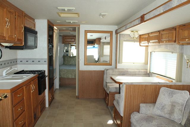This 2002 Allegro By Tiffin has a 8.1 liter V-8 Chevy Engine On a Workhorse Chassis, Features Include....2 Slide-outs, Onan Gas Generator, 2 Ducted Roof A/Cs, Levelers, Double Door Refrigerator With Ice Maker, Main Awning, Backup Camera, CD Radio, Heated Tanks, Satellite Dish, 2 TVs, DVD Player, Outside Shower, Convection Microwave, 3 Burner Range and Oven. Get out of the house today and start traveling this beautiful country by RV.