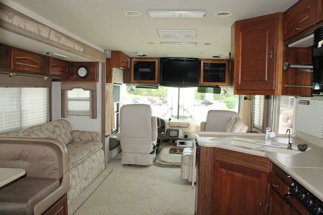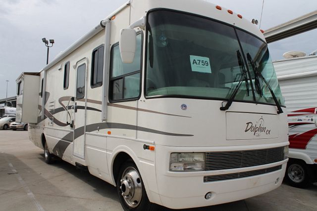 This 2003 Dolphin Lx By National RV has a 8.1liter Chevy Engine and Chassis, Comforts include....2 Slide-outs, Onan Gas Generator, 2 Roof A/Cs, Levelers, Double Door Refrigerator, Main/Win/Sld Awnings, Washer/Dryer Connections, Backup Camera, CD Radio, Satellite Dish, TV, DVD Player, Outside Shower, Convection Microwave and 3 Burner Range. Life on the road will be a wonderful experience. Let's Go Traveling!